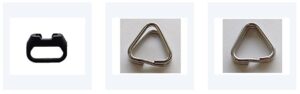 ストラップを装着する金具も買えます。「アイレットトライアングル」と呼ぶらしい。