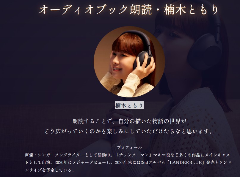 ☆原稿内に「ミッドナイトブルー」「ヘッドホン」が入ったオリジナル作品を募集し入賞作品は楠木ともりさんが朗読してくれたモノをオーディオブックとして公開してくれるという企画です。なんだか夢のある企画じゃないですかっ!!
