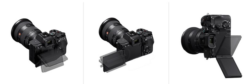 ソニー独自の4軸マルチアングル液晶モニターを搭載。横開きバリアングル液晶モニターとチルト液晶モニターの利便性を兼ね備え、横位置でも縦位置でも見やすい位置に自在に角度を調整できます。モニターを手前に引き出しカメラ背面に対して上方向約98度、下方向約40度にチルトできるほか、横方向に約180度開くことができます。オープン位置では約270度まで回転できるほか、映像の反転表示も細かく設定できる。