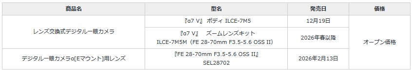 ベーシックモデルの基準を刷新する、フルサイズミラーレス一眼カメラ『α7 V』発売 は12月19日!