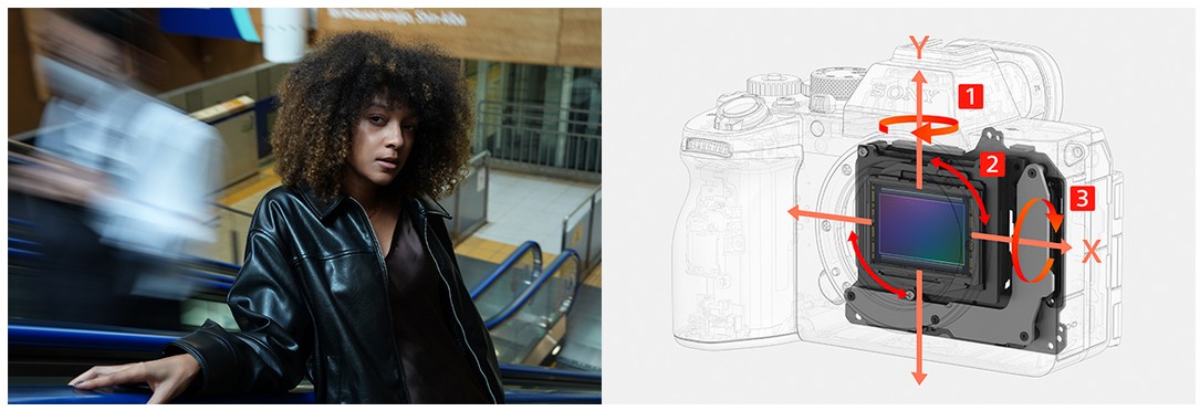 高精度な手ブレ補正ユニットおよびジャイロセンサーと、最適化されたアルゴリズムで手ブレ補正システムがトータルで進化。検出したブレを、手ブレ補正ユニットが高精度にコントロールし補正します。中央最大7.5段、周辺最大6.5段の手ブレ補正が可能。
