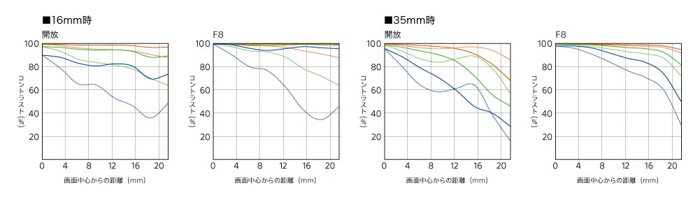 2枚の高度非球面レンズ(AAレンズ advanced aspherical)や1枚のED(特殊低分散)非球面レンズの採用により、画面中心から周辺部の隅々までの高い解像度を実現。