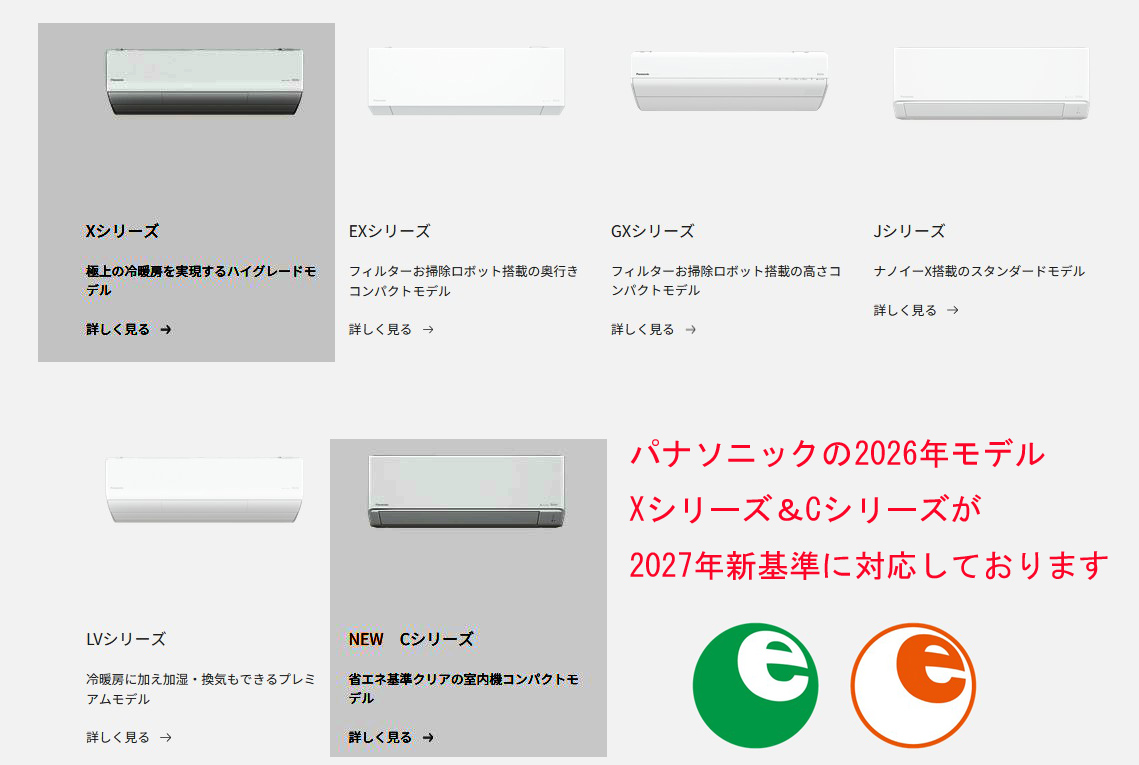 で、今年度のパナソニックのエアコンで2027年からの新基準に対応しているモデルは!
