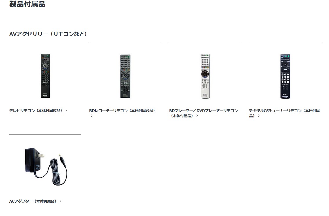 主だった物としては各種付属リモコン、付属ケーブル類となるでしょう。
