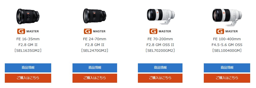 レンズの単品キャッシュバック対象品も前回と同様です。誰が呼んだか大三元兄弟も対象です。
