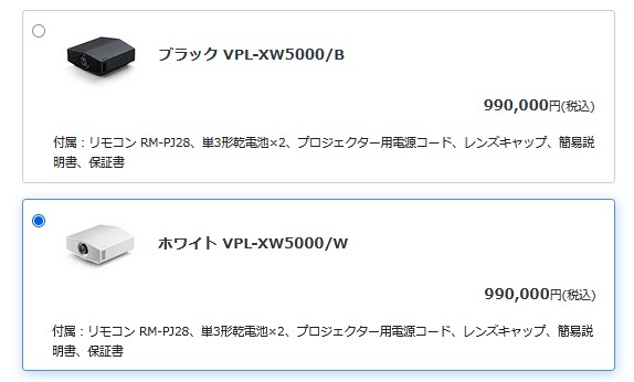 で、ソニーのビデオプロジェクターも実質残るラインナップはVPL-XW5000のブラックのみ。